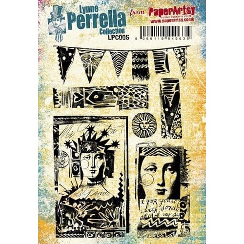 Designed by Lynne Perrella, these stamps are typical of her iconic design style. Lynne Perrella is well known as a designer and artist, and we are thrilled to have her design for PaperArtsy, SARL on a regular basis. She was THE original 'collage style' rubber stamp designer back in the 1970's for her own company 'Acey Deucey' .